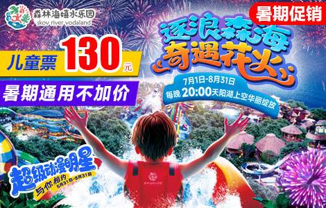 【儿童票|8月31日(含)前通用不加价】¥130抢广州森林海嬉水乐园「儿童期票」一价全场通玩,含椰林白沙滩、游船、森林温泉、抓鱼摸虾等50+玩水项目,暑期每晚8点璀璨烟花秀!